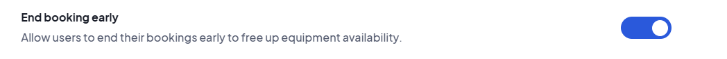 Users can end their bookings sooner than their booked time if needed. This allows the equipment to be free for other users in the account to create their own bookings.