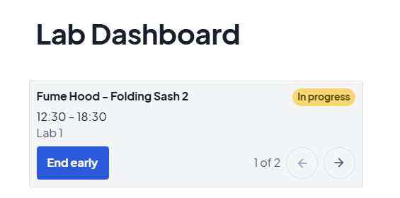 If this setting is turned on, users will find their active bookings displayed at the top of the lab dashboard page, with the option to End early.