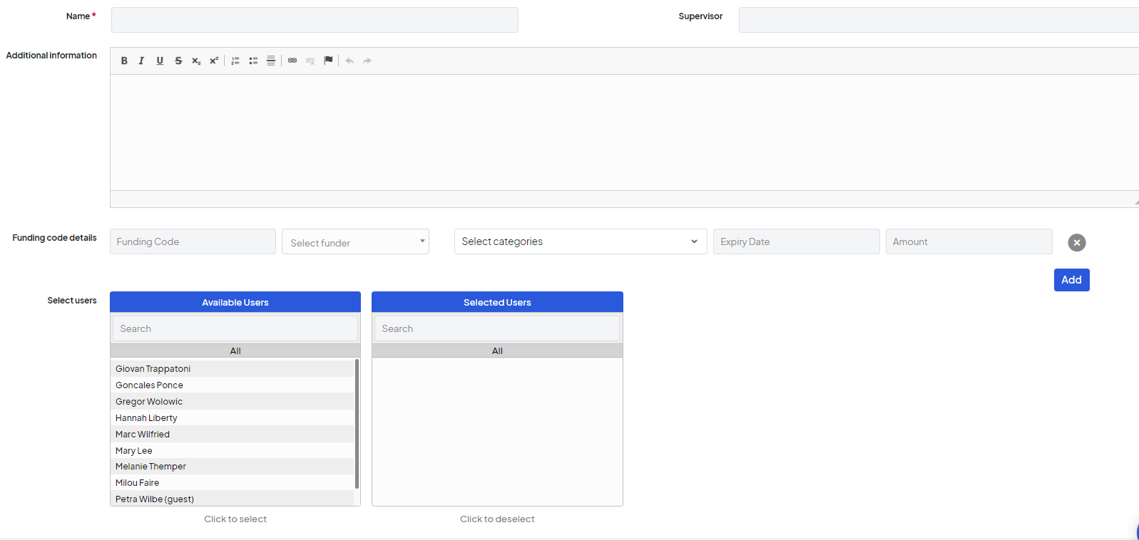 Just remember - assign the relevant users to the project, or else they won't be able to use that funding code/project when creating a booking.
