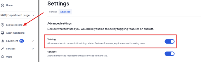 Firstly, the training feature is turned on/off in the lab settings, which is found on the lab dashboard page.