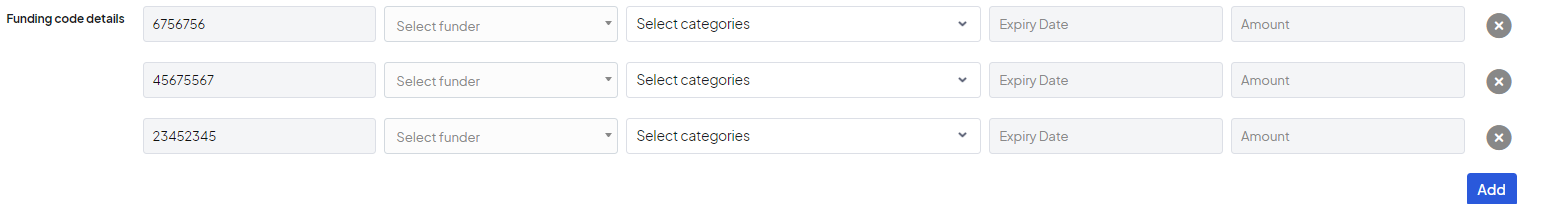 Currently you can add in as many funding codes as you want, however you are not able to edit them once they have been added and the Project has been created/updated.